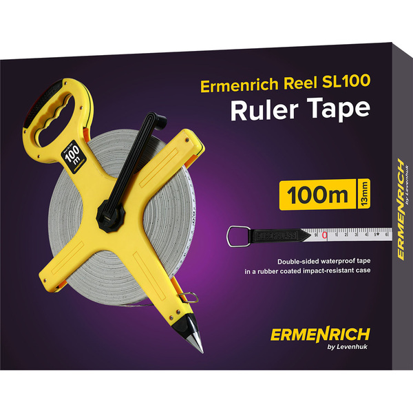 <p>Ролетката Ermenrich Reel SL100 е предназначена за измервания в рамките на 100 метра. Тя ще бъде полезна при определяне на границите на терени или при работа върху земен участък, където планирате изграждане на къща и стопански постройки. Измервателната лента има остър шип, който помага за закрепването й в земята. Тя има също ергономична дръжка, която улеснява работата, когато се работи по-дълго време и осигурява надеждно хващане.</p>