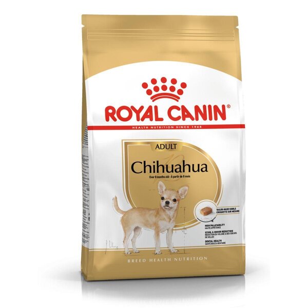 ВИСОКА ОВКУСЕНОСТ: CHIHUAHUA ADULT задоволява апетита на кучето Чихуахуа, благодарение на комбинацията от три фактора: адаптирани форма и размер на гранулата, специални формули и подбрани вкусове.
