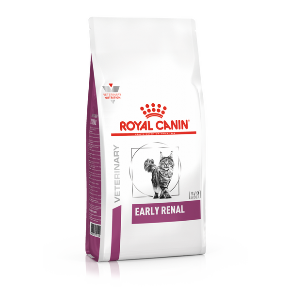 Суха храна за котки със стадий 1 на хронична бъбречна недостатъчност ROYAL CANIN® EARLY RENAL суха храна е пълноценна диетична храна за котки, създадена за поддържане на бъбречната функция при хронична бъбречна недостатъчност чрез ниско съдържание на фосфор и намалено съдържание на белтъчини, но от високо качество. EARLY RENAL суха храна е създадена за ранните стадии на хронична бъбречна недостатъчност. РАННО ПОДПОМАГАНЕ НА БЪБРЕЧНАТА ФУНКЦИЯ Началото на хроничното бъбречно заболяване при котките може да бъде забелязано чрез различни симптоми, като например загуба на тегло, липса на апетит или често повръщане. Ако диагнозата вече е поставена, специалната храна, предназначена за котки с такова заболяване може да подпомогне ветеринаро-медицинската терапия. Royal Canin Veterinary Feline Early Renal ist самостоятелна храна за котки с хронични бъбречни заболявания в ранен стадий и може да подпомогне бъбречната функция при първите признаци на нейното отслабване. Диетичната суха храна от Royal Canin се отличава с оптимален S/O-индекс, допринася за създаване на среда в урината, която да възпрепятства образуването на камъни и кристали. Освен това тя се отличава с умерено съдържание на фосфор и рецепта, богата на витализиращи съставки - с антиоксиданти и ценни мастни киселини омега. Тази котешка храна се отличава с лесносмелаем състав. Наред с другите съставки, тя съдържа влакнини и пребиотици, които подпомагат нормалната работа на храносмилателната система. Не на последно място Royal Canin Veterinary Feline Early Renal печели предпочитанията с чудесния си вкус и повечето котки много я харесват.  Royal Canin Veterinary Feline Early Renal, накратко:   Диетична суха храна за пораснали котки За хранене при хронична бъбречна недостатъчност (в първи стадий или ранен втори стадий според IRIS-класификацията) а също и за котки на възраст над 7 години, склонни към загуба на тегло Подпомага бъбречната функция: при първите признаци на отслабване на бъбреците, умерено съдържание на фосфор, и ценни мастни киселини омега 3 и 6 (EPA и DHA) и антиоксиданти При първите признаци на остаряване: снабдява котката ви с жизненоважни хранителни вещества, сред които антиоксиданти като витамините Е и С В помощ на храносмилането: лесносмилаем състав с балансирано съдържание на влакнини и пребиотици, може да подобри храносмилането и работата на червата Балансиран S/O-индекс: създава среда в урината, което е възпрепятства образуването на пикочни камъни С новозеландска зеленоуста мида: източник на глюкозамин и хондроитин Отличен вкус: харесвана от повечето котки Формулата включва умерено съдържание на фосфор, ейкозапентанова и докосахексанова киселина (ЕПА и ДХА), както иантиоксидантен комплекс. Тези съставки подпомагат бъбречната функция още при първите признаци на увреждане.