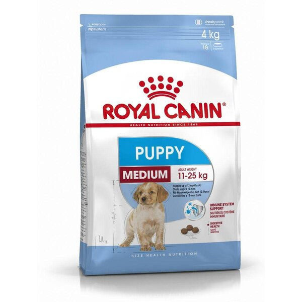 Пълноценна храна за кученца от средните породи (тегло в зряла възраст от 11 до 25 кг) до 12 месечна възраст. ОПТИМАЛНО ХРАНОСМИЛАНЕ: Ексклузивна комбинация от хранителни вещества за поддръжане на оптимална храносмилателна безопасност (L.I.P. протеини) и балансирана чревна микрофлора (пребиотици, фрукто-олигозахариди, мано-олигозахариди), която допринася за добро качество на изпражненията. КРАТЪК РАСТЕЖ - МНОГО ЕНЕРГИЯ: Задоволява високоенергийните нужди на кученцата от средните породи, по време на краткия им период на растеж. МИНЕРАЛЕН БАЛАНС (КАЛЦИЙ / ФОСФОР): Осигурява развитието на здрав скелет при кученцата от средните породи, благодарение на адаптирания прием на калция и фосфор. ЕСТЕСТВЕНИ ЗАЩИТИ: Помага поддържането на естествените защити на кученцето, благодарение на комплекс от антиоксиданти и мано-олиго-захариди.
