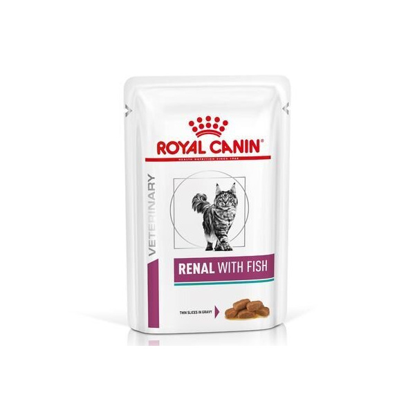 Аромат, вкус и разнообразие: консервираната храна Royal Canin Veterinary Feline Renal се предлага в няколко вкусови разновидности, така че дори и котките, страдащи от липса на апетит, да останат доволни. Диетичната консервирана храна е разработена специално за подкрепа за бъбречната функция при котки с хронична бъбречна недостатъчност и е подходяща за ежедневна употреба.Диетична консервирана храна се отличава със специална рецепта с умерено количество протеини и ограничено съдържание на фосфор. Това е направено с цел да се облекчи работата на бъбреците. Съдържанието на калций и витамин D също е намалено, за да се ограничи рискът от образуване на оксалатни камъни. Освен това храната притежава свойството да алкализира урината, за да се подпомогне достигането на идеална стойност на pH. Royal Canin Veterinary Feline Renal се отличава с висока енергийна плътност, за да се осигури достатъчен приток енергия в неголямо количество храна.Royal Canin Veterinary Feline Renal консервирана храна, накратко: