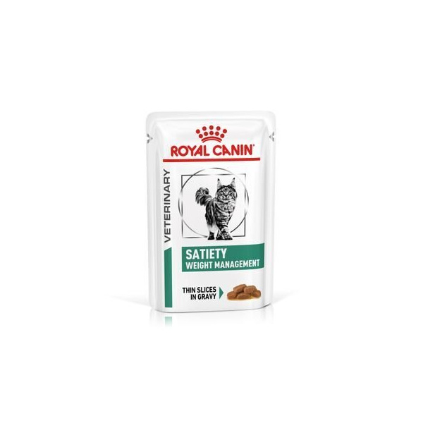 Royal Canin Veterinary Feline Satiety Weight Management е вкусна консервирана храна за пораснали котки, чиято рецепта е специално съставена, така че да подпомага контрола върху теглото. Тя е с намалено съдържание на енергия и може да помогне на вашата котка да намали теглото си по здравословен и устойчив начин и да го задържи и след диетата.Благодарение на високото съдържание на протеини котешката храна от Royal Canin може да помогне и за запазването на мускулната маса по време на отслабването.