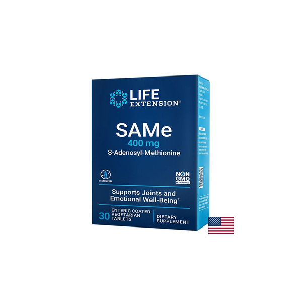 Life Extension SAMe S-Adenosyl-Methionine САМе 200mg x 30 таблетки е хранителна добавка, която поддържа доброто настроение и подпомага здравето на ставите и черния дроб.