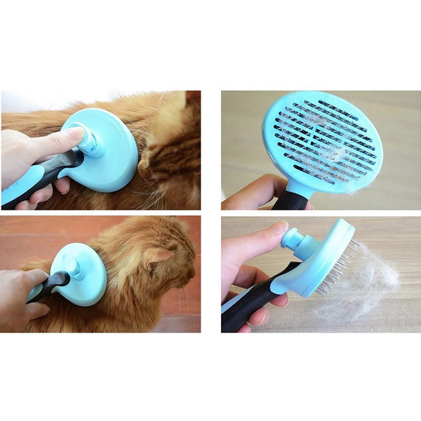 Груминг четката за кучета и котки разполага със самопочистващ се механизъм и практичен дизайн, позволяващ разресването да е равномерно и качествено.