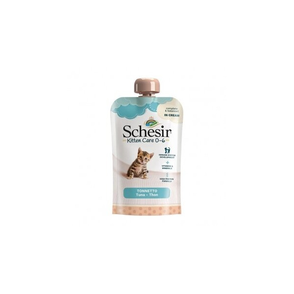 Рецепта, базирана на истински филета от риба тон в гладък крем, идеален за отбиване.Тази високопротеинова храна с витамини и минерали е идеална за развитие на имунната система на котенца от 0 до 6 месеца.Удобната опаковка от 150 g с капачка се грижи за чести малки хранения през целия ден.