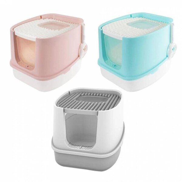 Иновативна закрита котешка тоалетна с отвор отгоре.