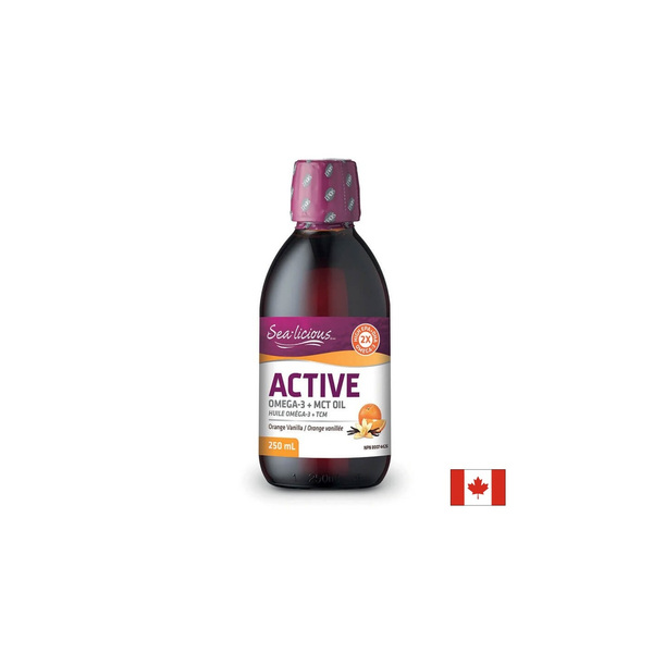 SEA-LICIOUS® Active Omega-3 + MCT Oil е висок клас рибено масло осигуряващо необходимата дневна доза концентрирани Омега-3 мастни киселини, средноверижни мастни киселини (MCT) и витамин D3. Комбинацията от Омега-3 мастни киселини (ейкозапентаенова мастна киселина (EPA) и докозахексаенова мастна киселина (DHA) в тяхната естествена, триглицеридна форма, която се абсорбира максимално от организма) и средноверижни мастни киселини (MCT) съчетава (едни от) най-полезните животински и растителни мазнини и подобрява абсорбцията и действието на витамин D върху имунитета и костното здраве.