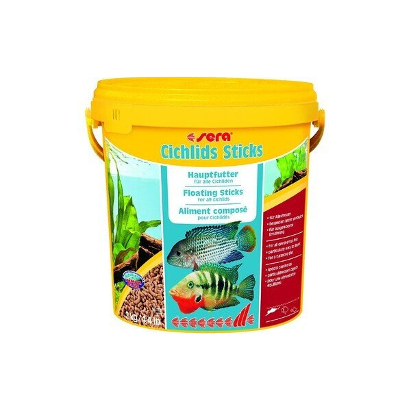 Храна за рибки Сichlids Sticks Nature е произведена в Германия от един от лидерите в бранша - Sera. Това е плаваща храна във вид на гранули, подходяща за основно хранене на всички видове цихлиди и други едри риби. Предлага се в разфасовки от 1 000 и 10 000 мл. Произвежда се без изкуствени оцветители.