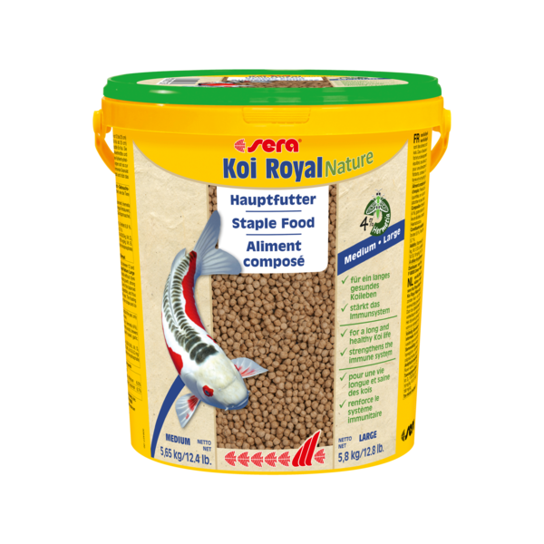 sera Koi Royal Nature Medium (4мм) е основна храна, състояща се от внимателно обработени гранули без оцветители и консерванти.