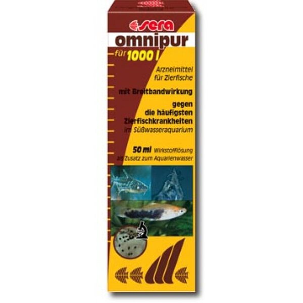Sera Omnipur e с много добър ефект срещу най-често срещаните болести при декоративните рибки в сладководния аквариум. Особено подходящ, когато не може да се постави точна диагноза на болната рибка.