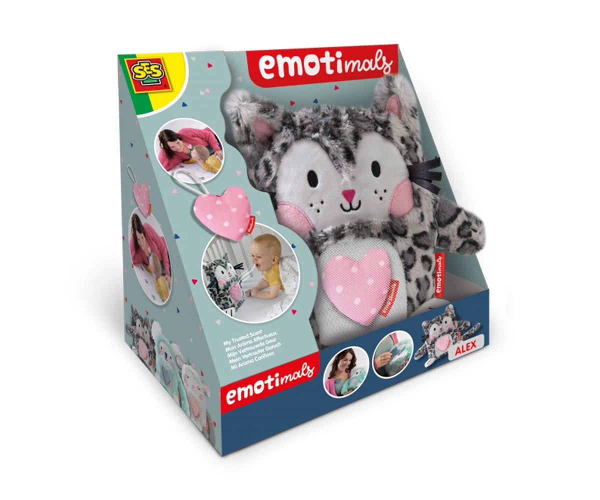 За това тази плюшена играчка има специално сърце от плат, което е проектирано да абсорбира познатия ви аромат, когато го носите близо до тялото си.