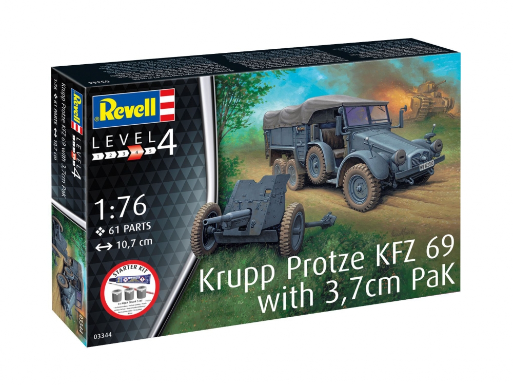 Сглобяем модел, Revell, Стартов комплект камион Круп Протце KFZ 69 3.7см, 61 части