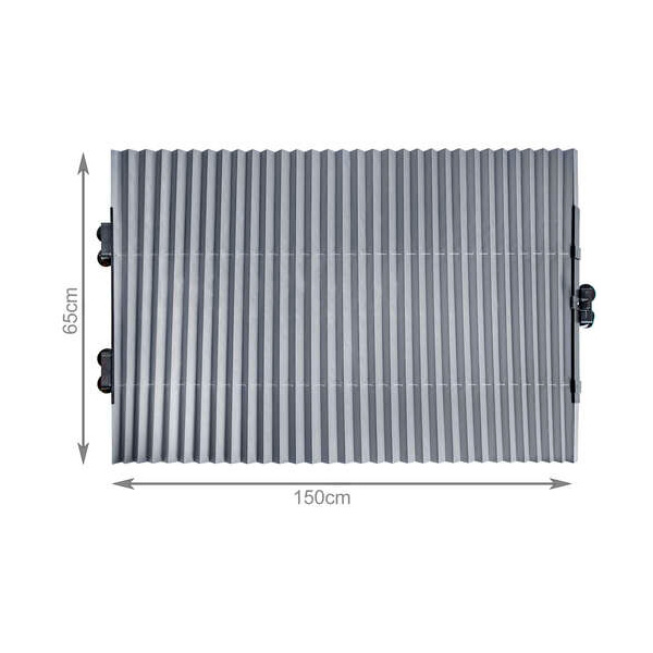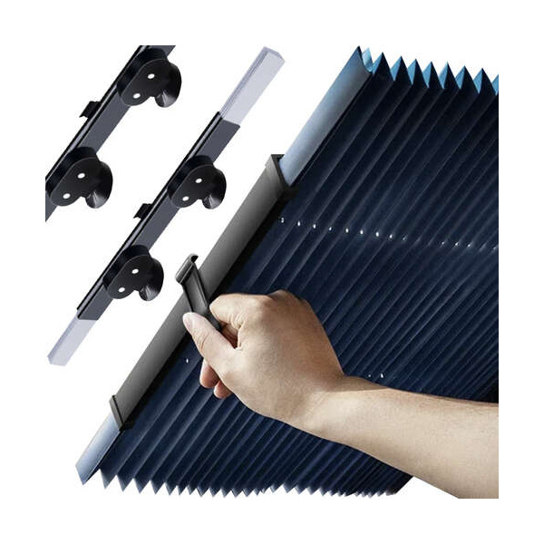 НЕ ПРОПУСКА СЛЪНЧЕВИ ЛЪЧИ – сенникът, поставен на стъклото намалява загряването на автомобила при дълъг престой и предпазва хората в автомобила от вредното въздействие на слънчевата светлина. УНИВЕРСАЛЕН – благодарение на специфичната си форма и възможността за изрязване, ролетната щора ще бъде перфектна за всеки тип превозно средство, от големи коли за доставки до типични градски автомобили. Можете да регулирате ширината му според вашите предпочитания и ширината на стъклото.