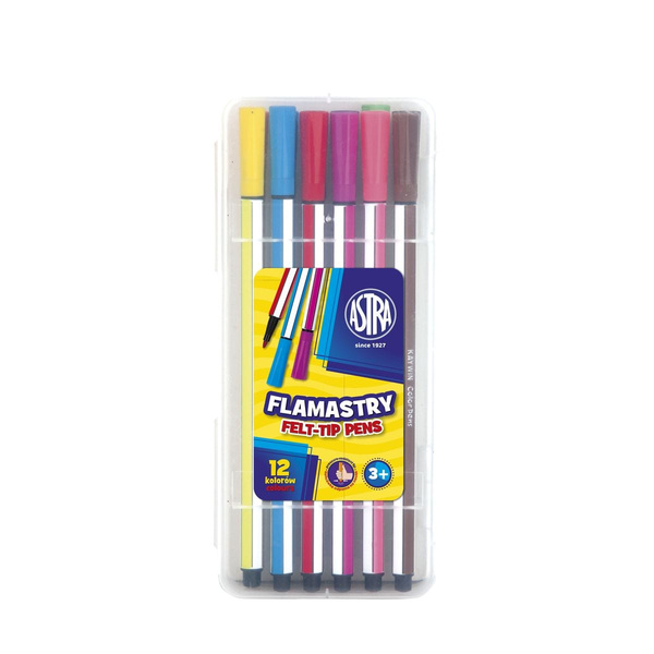 Комплект флумастери, Astra, Шестоъгълни с филц, 12 цвята
