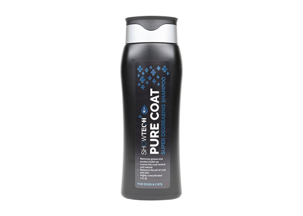 Подходящо за кучета и котки. Котките имат естествено мазна и богата на себум кожа. Излишният себум и мазнина се справят ефективно с този шампоан. За кучета този шампоан е предназначен за първо измиване. След като използвате шампоана за обезмасляване Pure Coat, препоръчваме второ измиване с хидратиращ шампоан.