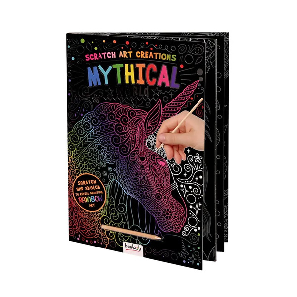 Разкрийте красотата на изкуството със скреч творенията ,,Митичен свят”! Използвайте дървената писалка върху скреч листите и ще получите красиви, цветни картини!