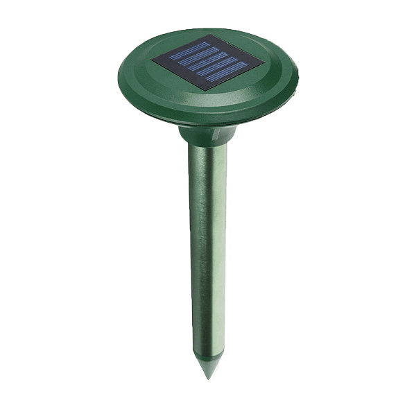 Соларен електронен уред за прогонване на животни. Ефективен с борбата срещу къртици, мишки, мравки и змии. Без привикване към шума благодарение на системата Swelling Frequency Technology (SFT).Технически данниЗахранващо напрежение: 1 х AAA NiMH 1,2 V 600 mA (соларна батерия включена в комлекта).Тяло: алуминиево, устойчиво на атмосферните условия.Област на действие: за около 1250 кв.м в зависимост от вида на почвата.Честота: 400 Hz?1000 Hz саморегулиращ се ултразвук.Интервал: 50 секунди.
