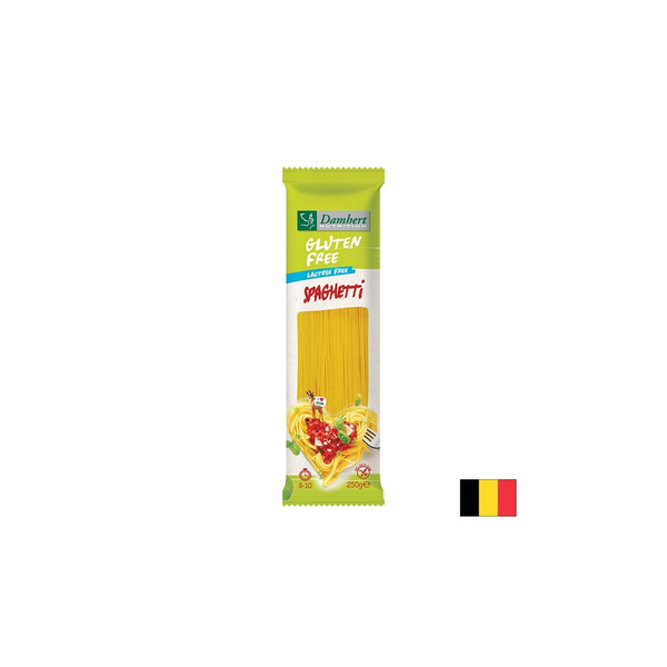 Gluten Free Spaghetti Lactose Free / Спагети (без глутен, лактоза), 250 грама е здравословен продукт на белгийската компания Damhert. Тази висококачествена паста е разработена специално за хора с непоносимост към глутен и лактоза, както и за тези, които следват вегански начин на живот. Продуктът включва натурални съставки – 70% царевично брашно и 29,5% оризово брашно.