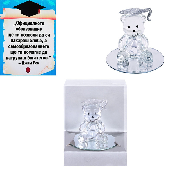 Стъклена фигурка Мече "Дипломиране" /стъкло/.