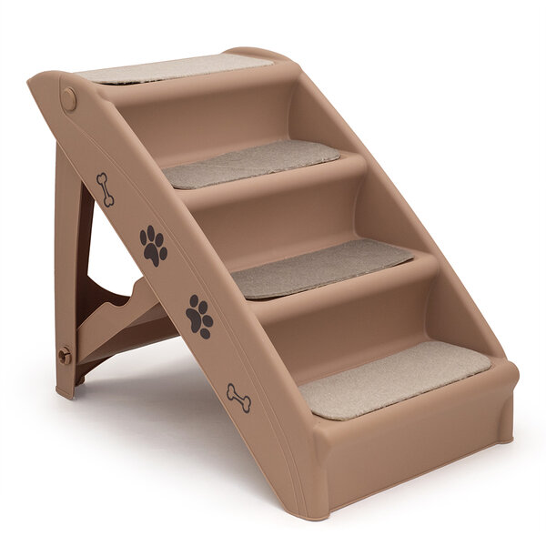 Кучешката стълба е подходяща за малки и големи домашни любимци и им позволяват да достигат до любимите си места с лекота. Модерният им стил се съчетава добре с всеки декор на дома. Ако кучето или котката ви не са достатъчно високи, за да стигнат до леглото или дивана, сгъваемите стълби за домашни любимци улесняват качването на домашния любимец върху мебелите. Стъпалата за домашни любимци, тежащи само 2 кг, са лесни за транспортиране и могат да издържат до 75 кг. Макар и лека, тази стълба за домашни любимци е здрава и издръжлива. Вградените предпазни странични релси, филцови калъфи и неплъзгащи се крачета предотвратяват плъзгането на стъпалата, както и подхлъзването на вашия домашен любимец нагоре и надолу по стълбата, докато тича, за да се изкачи. Можете да сгънете стълбата за домашни любимци и да я съхранявате лесно под мебел, когато не се използва.