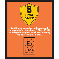 Goldfix Pro, сертифициран съгласно обновените европейски стандарти за безопасност (I-Size - R129), включително най-трудните краш тестове, отговарящи на новите изисквания за безопасност.