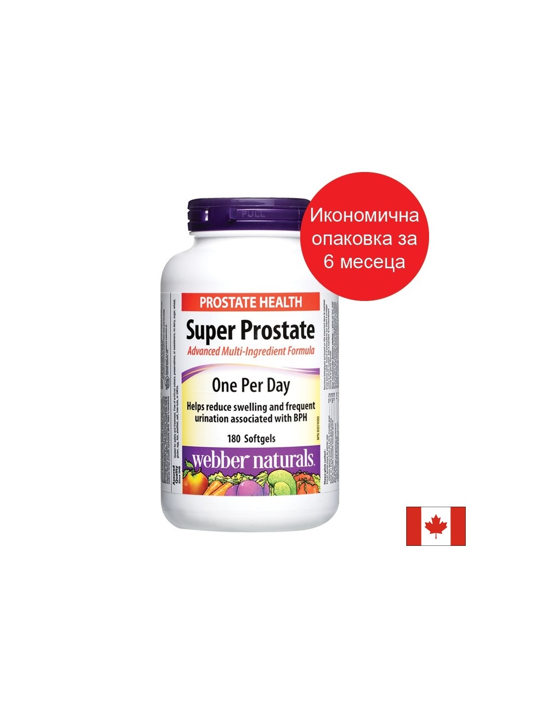 Супер Простате Формула за мъже на Webber Naturals е специално разработен продукт за мъжете преди 50-годишна възраст, чието полово здраве е засегнато от физически и психически стрес, липса на сън или прекалено интензивен сексуален живот. Формулата се състои от високоефективни екстракти от Сао палметто, коприва и домат в комбинация с цинк, селен и масло от тиквено семе за поддържане нормалното състояние на простатната жлеза.