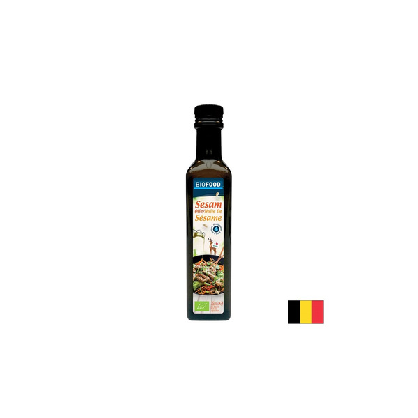 Biofood Sesamolie BIO / Сусамово масло (студено пресовано), БИО, 250 мл е висококачествено студено пресовано сусамово масло, получено от подбрани сусамови семена, отглеждани в условия на контролирано биологично земеделие. Произведено в Белгия от Damhert - лидер в производството на био и здравословни храни, това масло предлага не само невероятен вкус, но и множество ползи за здравето. Със своя златисто-кафяв цвят и богат аромат, сусамовото масло е идеално допълнение към вашата кухня.