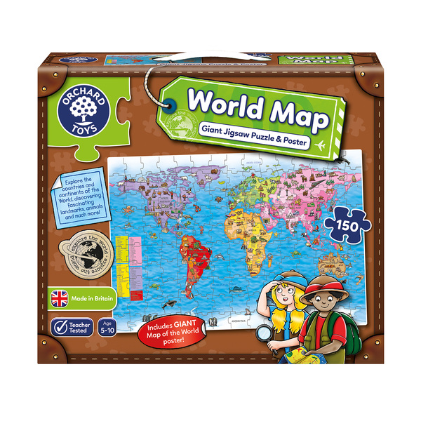 Детски пъзел, Orchard Toys, Световна карта, Пъзел и плакат, 150 части