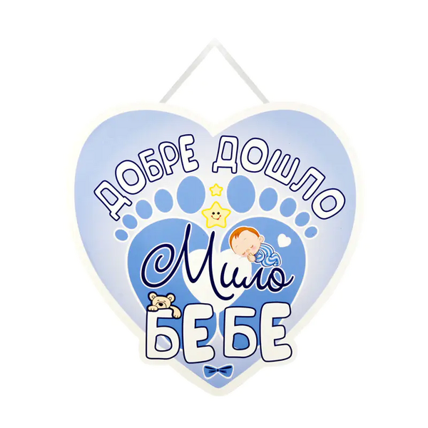 Табела в синьо с надпис Добре дошло мило бебе във формата на сърце