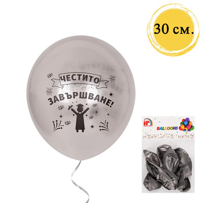 Парти балони за дипломиране – сиви с надпис Честито завършване