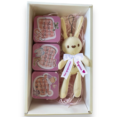 Подаръчен комплект за бебе момиче - Розово плюшено мече