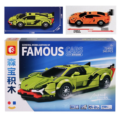 Конструктор - Спортна кола SEMBO Синя с жълто