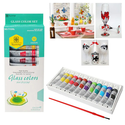 Бои за порцелан и стъкло с четка /12 цвята/