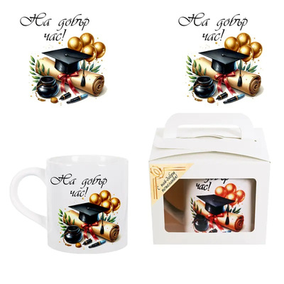 Подаръчен комплект - Честито дипломиране с ключодържател бухал и чаша с послание