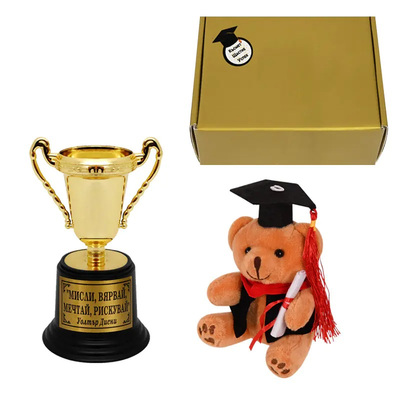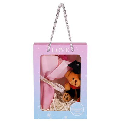 Подаръчен комплект - Дипломиране вечни цветя и плюшено мече