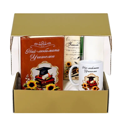 Подаръчен комплект - Най-любимата учителка с бележник, чаша, книгоразделител и химикал