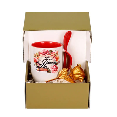 Подаръчен комплект - Най-добрата класна с чаша, лъжичка и златна роза