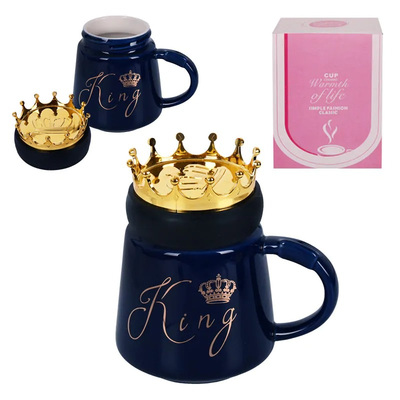 Луксозна чаша с капак и лъжичка /тъмно син/