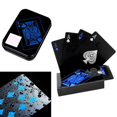 Луксозни черни водоустойчиви PVC карти в метална кутия