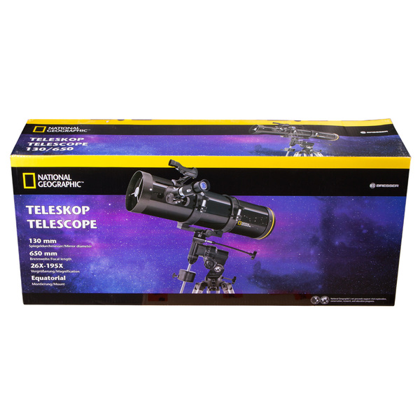 <p>Bresser National Geographic 130/650 EQ Telescope is a Newtonian reflector with a large 130mm aperture that gathers enough light to show you objects inside and even outside the Solar System. The relatively short focal length (650mm) makes the telescope very compact, and therefore convenient for field observations. A stable and reliable EQ3 equatorial mount harmoniously supplements this telescope. It is ideally adapted for long-term observation of moving objects, as it perfectly compensates the diurnal motion of the celestial sphere.</p>