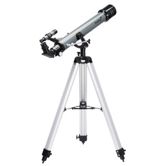<p>Телескопът използва схемата на ахроматичен рефракторен телескоп. Неговите лещи са изработени от стъкло. Оптиката е с антирефлексно покритие, така че осигуреното изображение е отчетливо и ясно в цялото зрително поле. Азимуталната монтировка с вилка има миниатюрен винт на вертикалната ос, който Ви дава възможност за точно насочване на телескопа към избрания обект. Алуминиевият триножник има поставка за принадлежности. Височината на триножника е регулируема.</p>