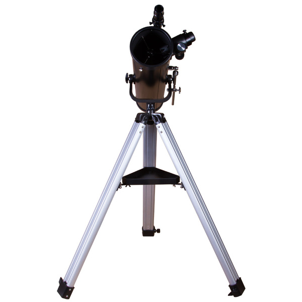 <p>Телескопът се получава с азимутална монтировка и не изисква много време за настройване. С Levenhuk Skyline BASE 100S се работи като с класическа зрителна тръба чрез преместване на оптичната тръба наляво, надясно, нагоре и надолу. Монтировката е закрепена върху стандартен триножник, произведен от алуминий, който се разполага надеждно дори върху неравни повърхности. Има поставка за принадлежности. Триножникът е с регулируеми крака.</p>