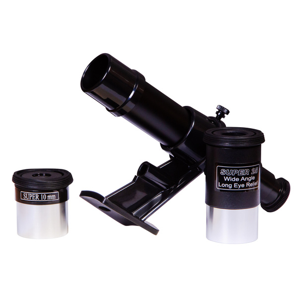 <p>Комплектът включва необходимите принадлежности за наблюдения, така че не се налага да закупувате допълнителни принадлежности. Има два окуляра с различно фокусно разстояние и леща на Барлоу. Те се използват за получаване на оптимално увеличение за наблюдение на различни космически обекти. Оптичен визьор осигурява увеличение 6х.</p>