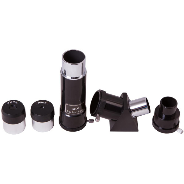 <p>Комплектът включва следните елементи: два окуляра, диагонална призма и леща на Барлоу – всичко, от което се нуждаете за наблюдение. Стандартното увеличение при доставката е до 135x. Тръбата е монтирана върху азимутална монтировка, която може да се завърта вертикално или хоризонтално. Не е необходимо да имате специални умения или познания, за да работите с телескопа. Тръбата на телескопа ще Ви изненада – тя е с размер едва на половината от размера на стандартния рефракторен телескоп.</p>