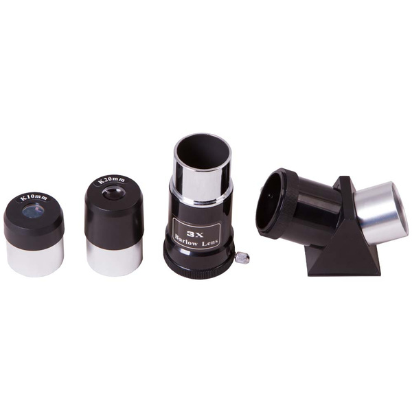 <p>Комплектът включва принадлежности за наблюденията: оптичен визьор, леща на Барлоу и два окуляра. Максималното увеличение с включените оптични елементи е 120x.</p>