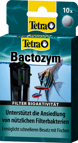 Tetra Bactozym ускорява биологичната активност в аквариума. Съдържа оптимизирана смес от спори, хидроколоиди и инулин. Естествени, органични колоиди покриват филтърния материал и всички повърхности с биофилм, за да насърчат колонизацията на полезни филтърни бактерии.