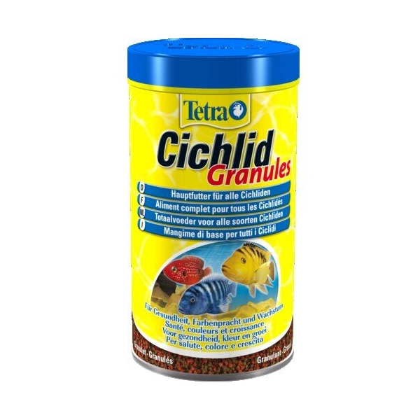 Миксът включва два различни вида мини гранули – за разнообразно и балансирано хранене на цихлиди. Съдържа естествени каротиноиди за по-наситени цветове.