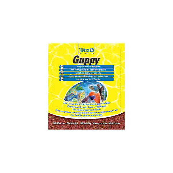 Основна храна за гупи и други видове тропически рибки.Подсилва естествения цвят и стимулира жизнеността на рибките.