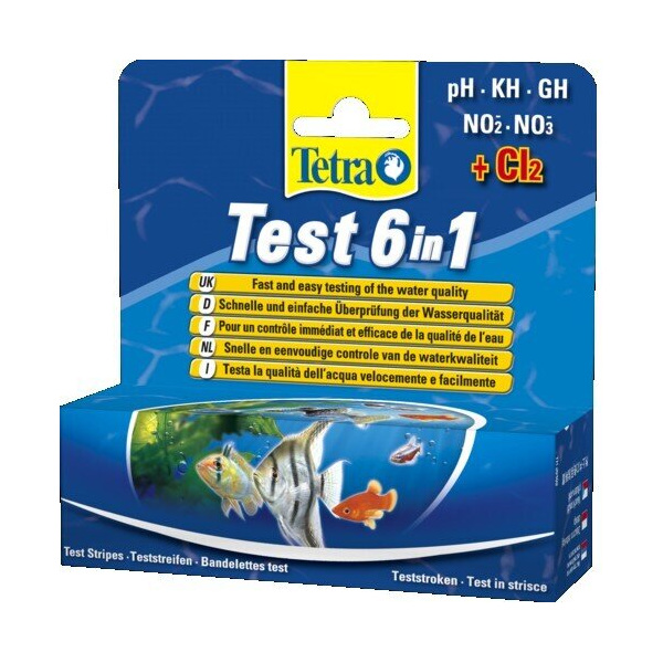 Проверяват се 6 важни стойности само с една стъпка: основна и карбонатна твърдост (GH + KH), нитрити (NO2), нитрати (NO3), pH и хлор (CL2). Подходящ за сладководни аквариуми.