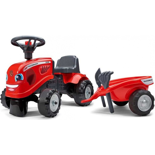 Трактор Mac Cormick с ремарке, гребло и лопатка - червен